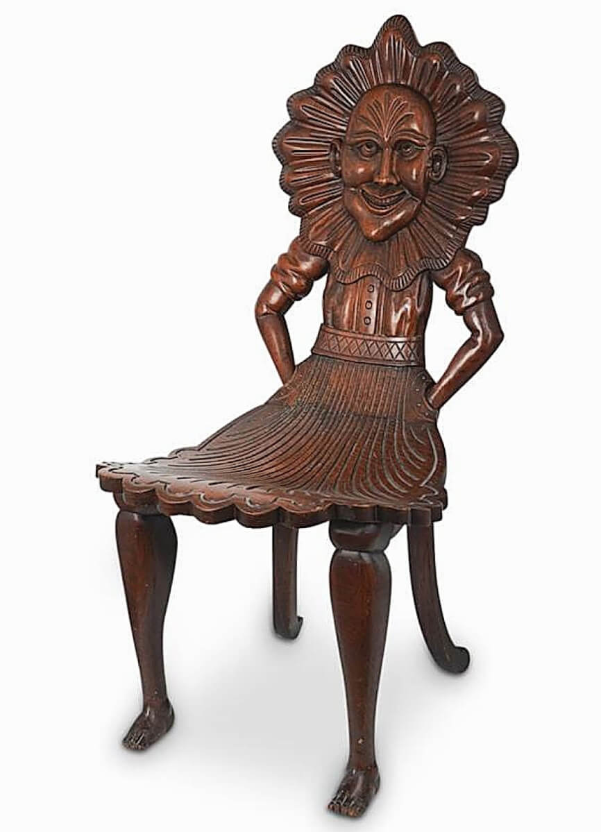 Way whimsical was a carved figural oak chair from the Nineteenth-Twentieth Century, which found a buyer at $1,875.