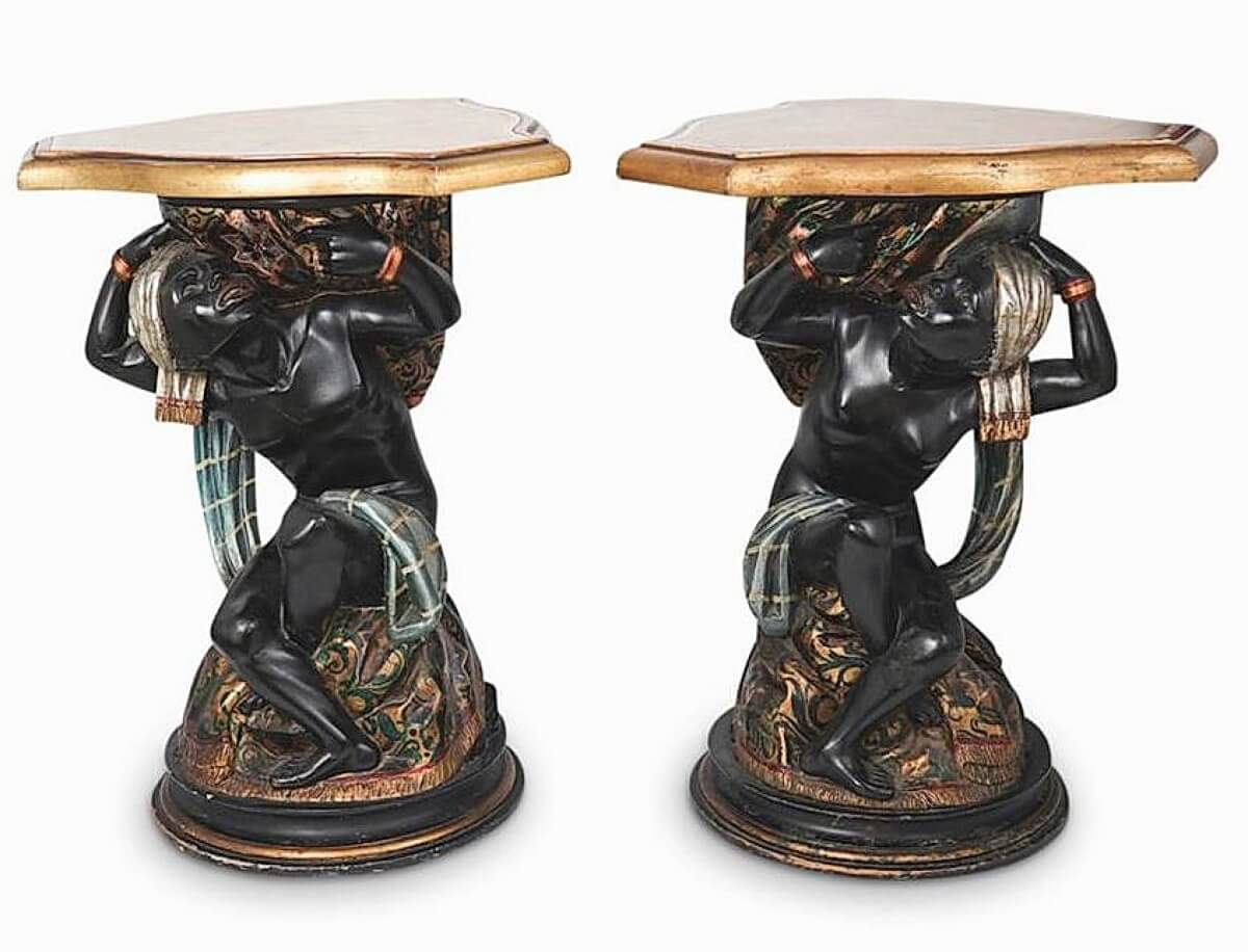 The pair of antique polychrome blackamoor pedestals commanded $1,875.