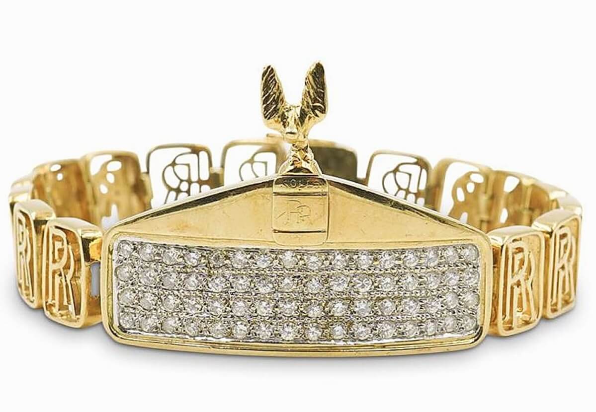 The distinctive front grille of a Rolls Royce was the inspiration for this 18K gold and diamond bracelet that sold for $3,125.