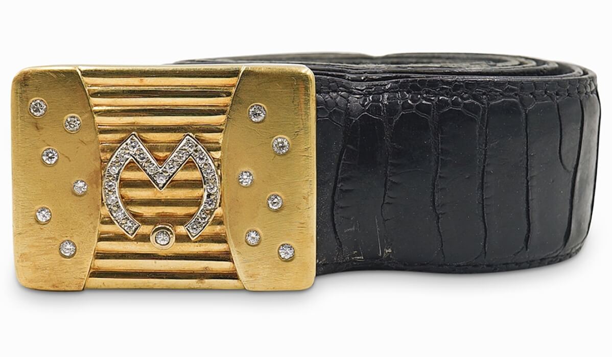 This Italian 18K yellow gold and diamond belt, circa 1970s-80s, sold for $1,375. It featured a big M at the center finished in approximately 2 carats of white diamonds.