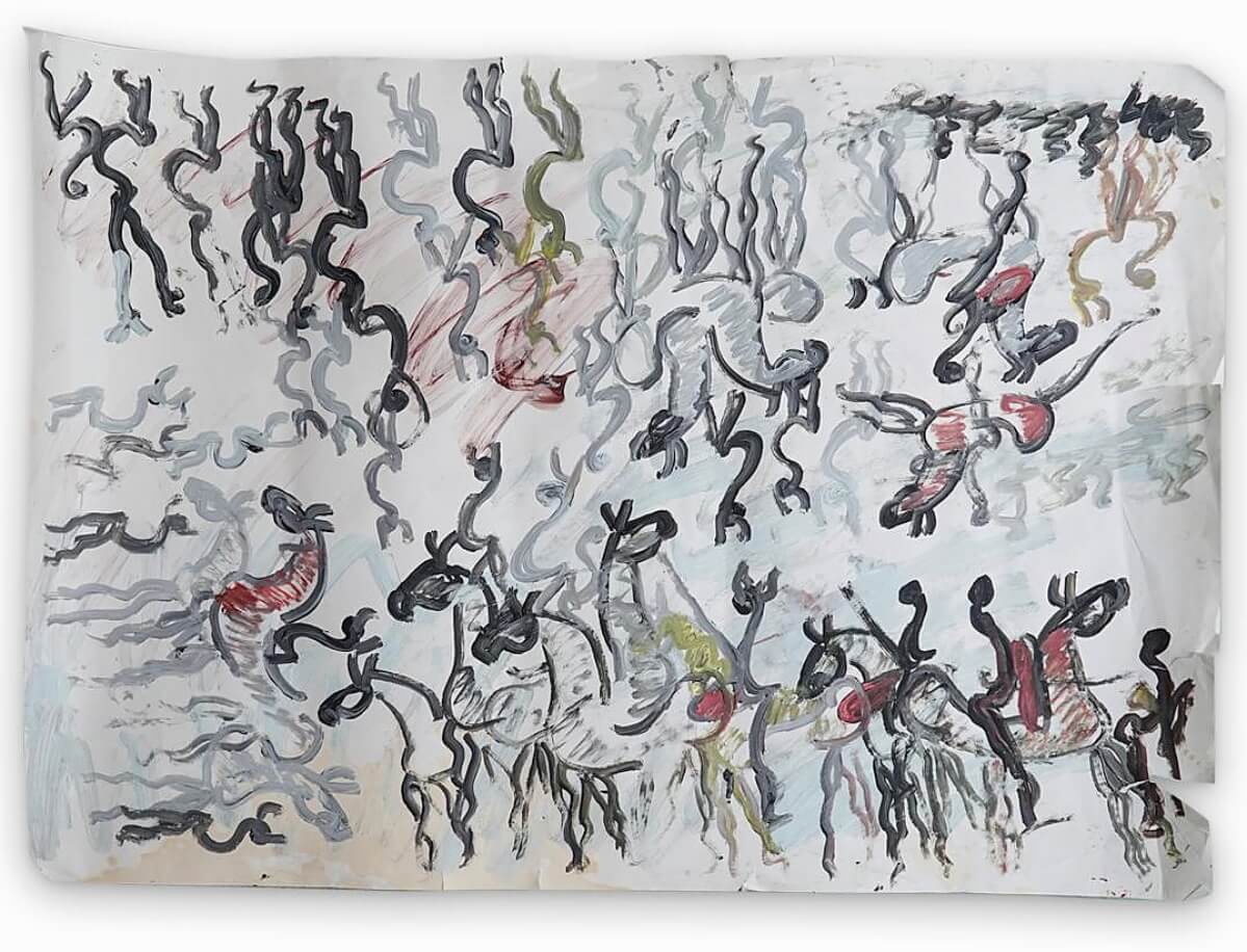 This untitled mixed media painting on paper by Purvis Young (American, 1943-2010) was the last of four lots by the artist in the sale. It made $1,240 ($200-$1,000).