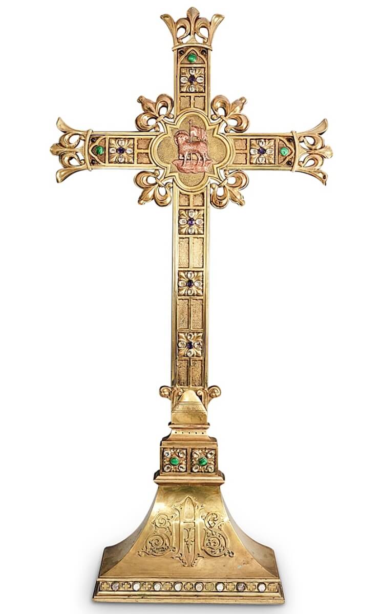 An antique Gorham altar cross with gilt-brass and jewel accents left the gallery at $11,875.