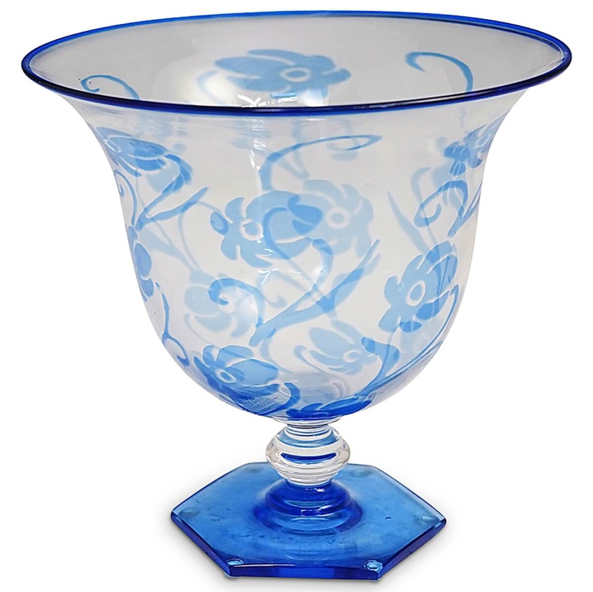 This blue intarsia vase stands on a blue foot. Circa 1930, it was blown by master Johnny Jansson, gaffer at the Steuben Glass Works, and commanded $12,500.