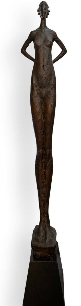 This bronze figure by Tom Corbin (American, b 1954) was titled “Diva II,” stood 78 inches tall and was numbered 21/60 on the base. Estimated at $2/6,000, it realized $3,840 with 17 bids.