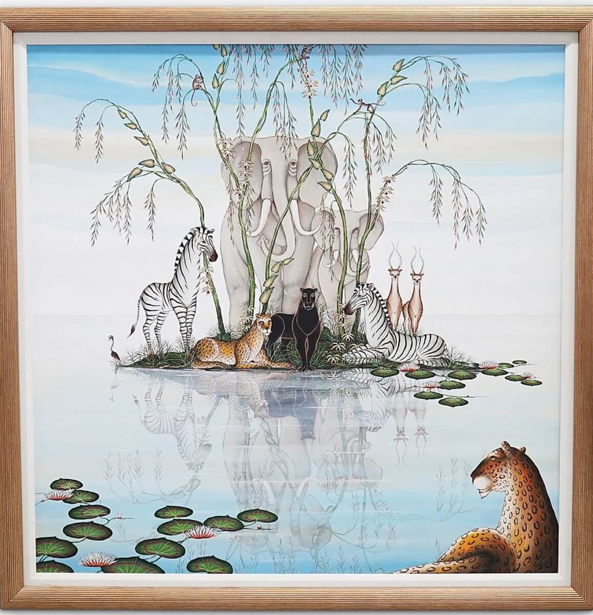 Twentieth Century Chilean artist Gustavo Novoa’s works come up from time but time but rarely as large as this one. “Summer Retreat” measured 47 by 47 inches and included a study by the artist. A buyer in Florida bagged the desert island safari scene for $7,200 ($4/8,000).