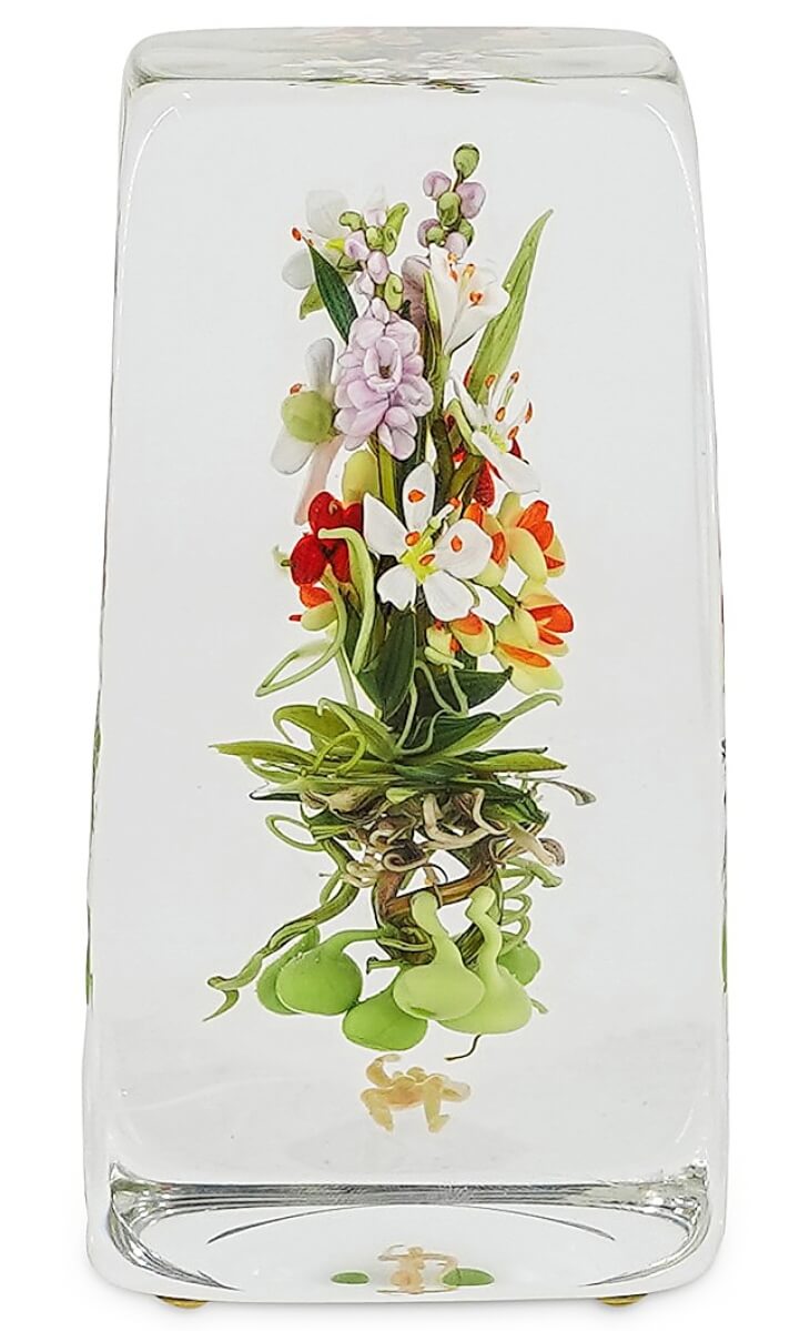 Another botanical lampwork glass paperweight in a vertical shape by Paul Stankard was bid to $5,938.